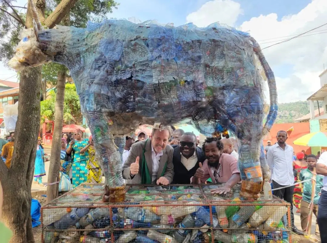 À Bukavu, plus de 41 000 bouteilles plastiques ont été transformées en deux œuvres d’art urbaines écologiques, dévoilées ce 31 mars 2026 dans le cadre du Mois vert.