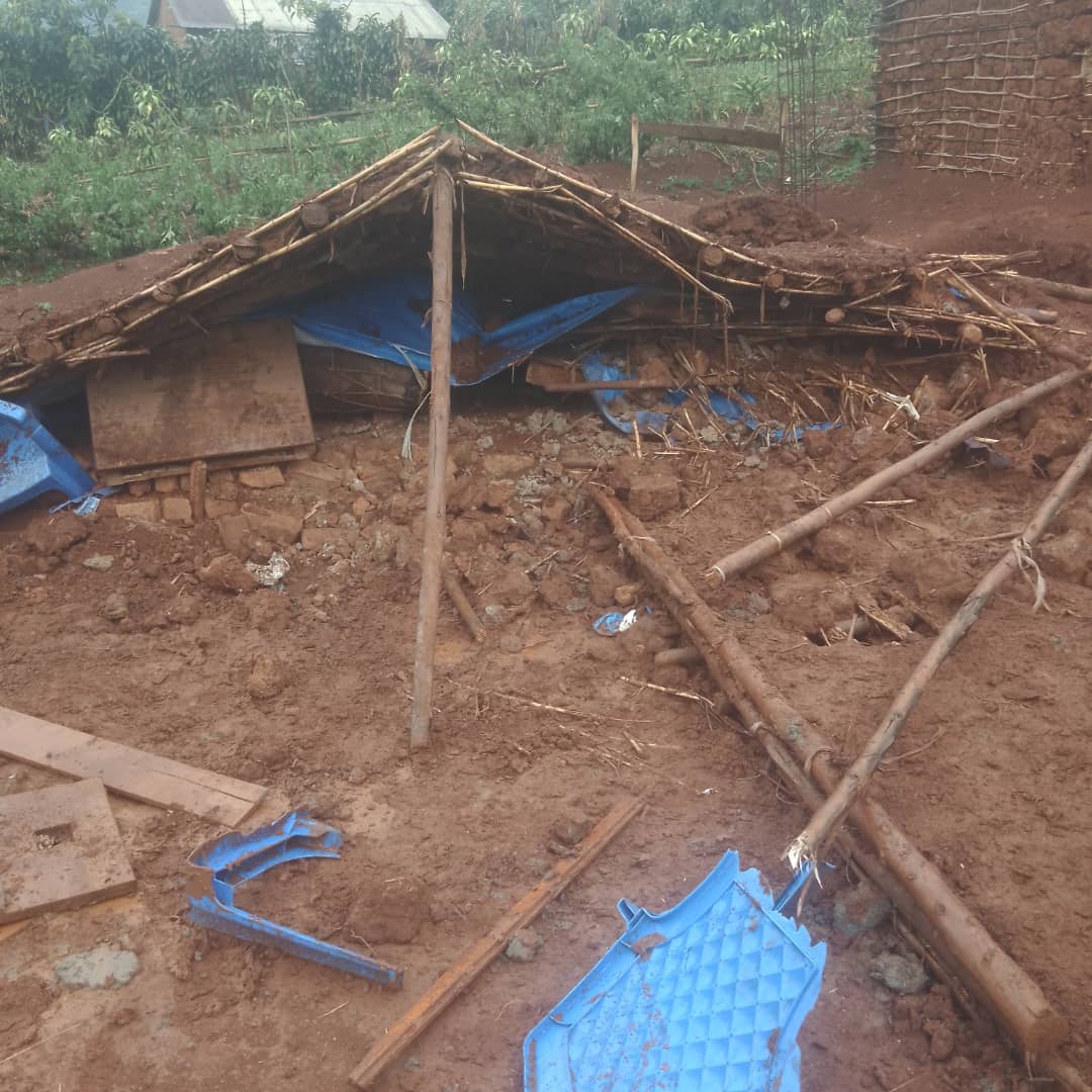 Selon Delphin Ombeni, Président du groupe d’écoute de Mugogo dans le groupement de Lurhala, l’Eglise de la 8ième CEPAC Sayuni située au centre de Bideka, dans le village de Kashe/Kahembarhi, s’est totalement écroulée sous la force du vent et de l’eau.